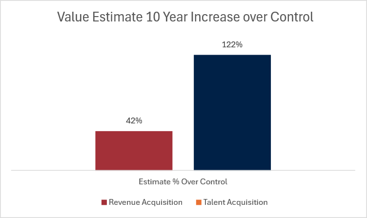 As you can see, the talent acquisition nearly tripled the performance of the revenue acquisition, which speaks to the importance of organic growth and the value of acquiring talent with a long runway.