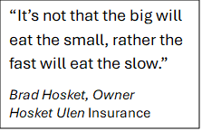 A technology strategy is a core component of any business plan. If you lack both and are at an age or a mindset where you do not want to invest in technology, sell now. Your value will not increase if you continue operating in this manner. Agency owner Brad Hosket summed up this point best by stating, “It’s not that the big will eat the small, rather the fast will eat the slow.”